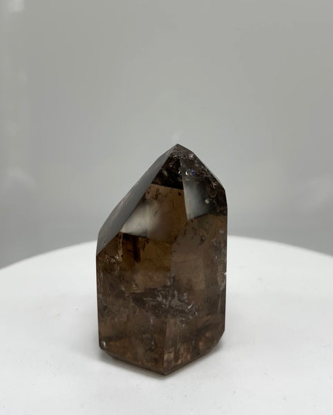 This Brazilian quartz features crackles within, showing small rainbows within at different angles. Known for powerful grounding and protective crystal, known for transmuting negative energy into positive, alleviating stress, fear, and depression, and promoting emotional resilience and stability.