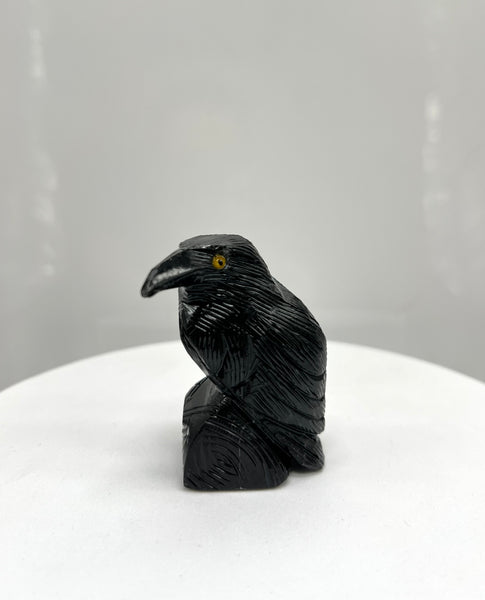This onyx raven figurine symbolizes protection from negative energy, transformation, wisdom, and the mysteries of death and rebirth.